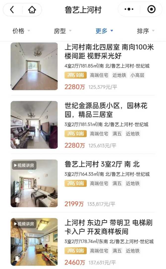 根据平台信息,小区名称为“鲁艺上河村”,建成年代为2001-2007年,容积率1.7,绿化率45%,9月挂牌均价为14.55万元/平方米,目前在售房源23套。小编通过检索发现,与公告中房产相似的房型最低挂牌均价为12.5万元/平方米。