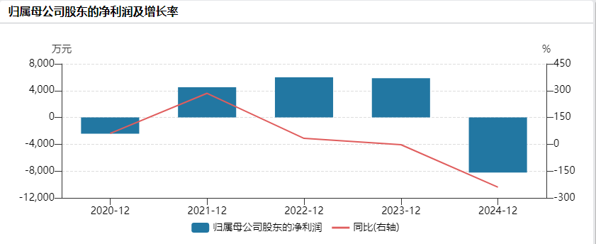 近年来,该公司经营业绩整体呈现下行态势。最新财报显示,2025年上半年营业收入约3.23亿元,同比减少24.2%;归属于上市公司股东的净利润亏损约6180万元;基本每股收益亏损0.15元。