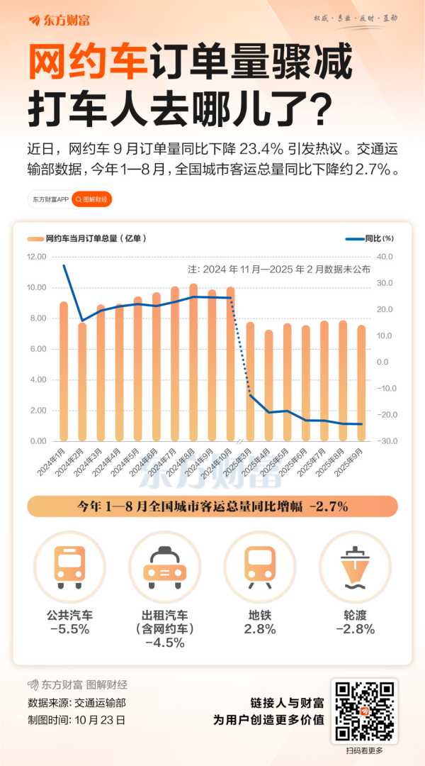 近日,网约车9月订单量同比减少23.4%成热议话题,交通运输数据揭示出行趋势。交通运输部数据显示,全国网约车月订单量自7月以来已经三连降,而往年来说,暑期是一年中打车需求最旺盛的时段之一,今年却呈现明显下滑态势。