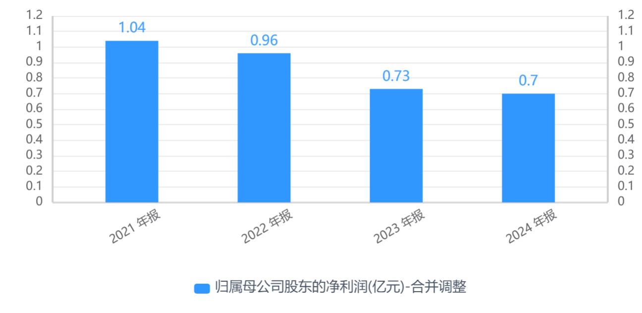 业绩方面,信音电子净利润已连续三年下滑,今年上半年延续下滑态势。2021年至2024年,公司归母净利润分别为1.04亿元、0.96亿元、0.73亿元、0.7亿元,业绩波动引发关注。