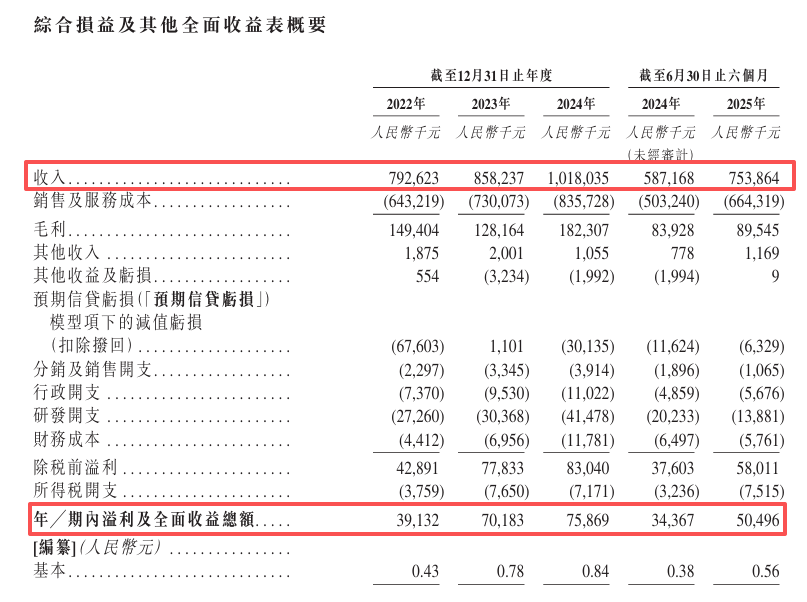 豪特节能主要专注于提供一站式定制能源管理解决方案,业务涵盖咨询服务、解决方案设计、设备选型及采购、项目集成及实施、系统维护等能源管理项目的所有环节。2022 - 2025年上半年,公司营业收入约为7.93亿元 - 10.18亿元不等,公司净利润分别约为0.39亿元、0.7亿元、0.76亿元及0.5亿元。