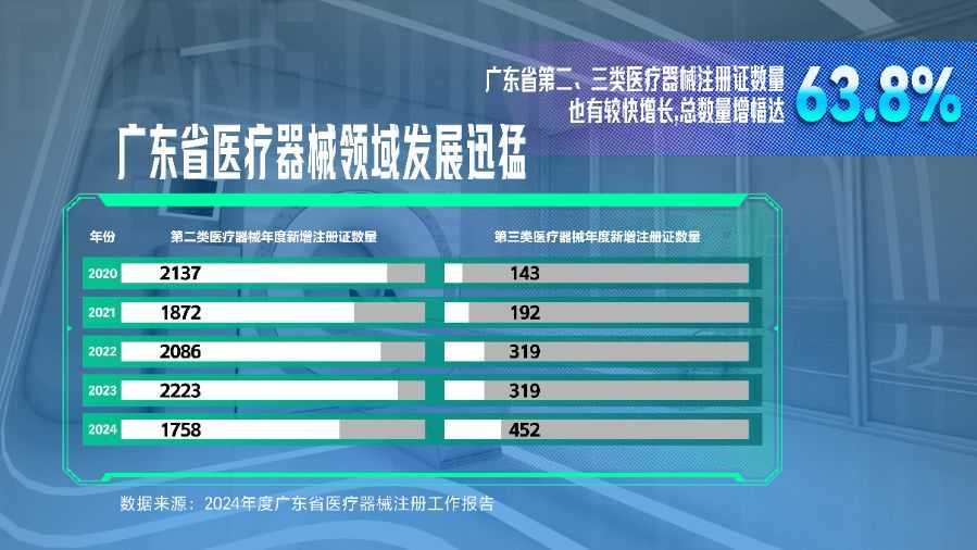 广东省第二、三类医疗器械注册证数量也有较快增长,