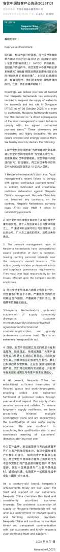 11月2日,安世中国就“荷兰安世半导体单方面决定自2025年10月26日起停止向位于东莞的封装测试工厂(ATGD)供应晶圆”发文称,目前,安世中国已建立充足的成品与在制品库存,能够稳定、持续地满足广大客户直至年底乃至更长时间的订单需求,供应链安全可靠。为确保供应的长期性与韧性,安世中国已积极启动多套预案,正在加紧验证新的晶圆产能。安世中国对在短期内完成验证、并自明年起无缝衔接满足所有客户需求充满信心。