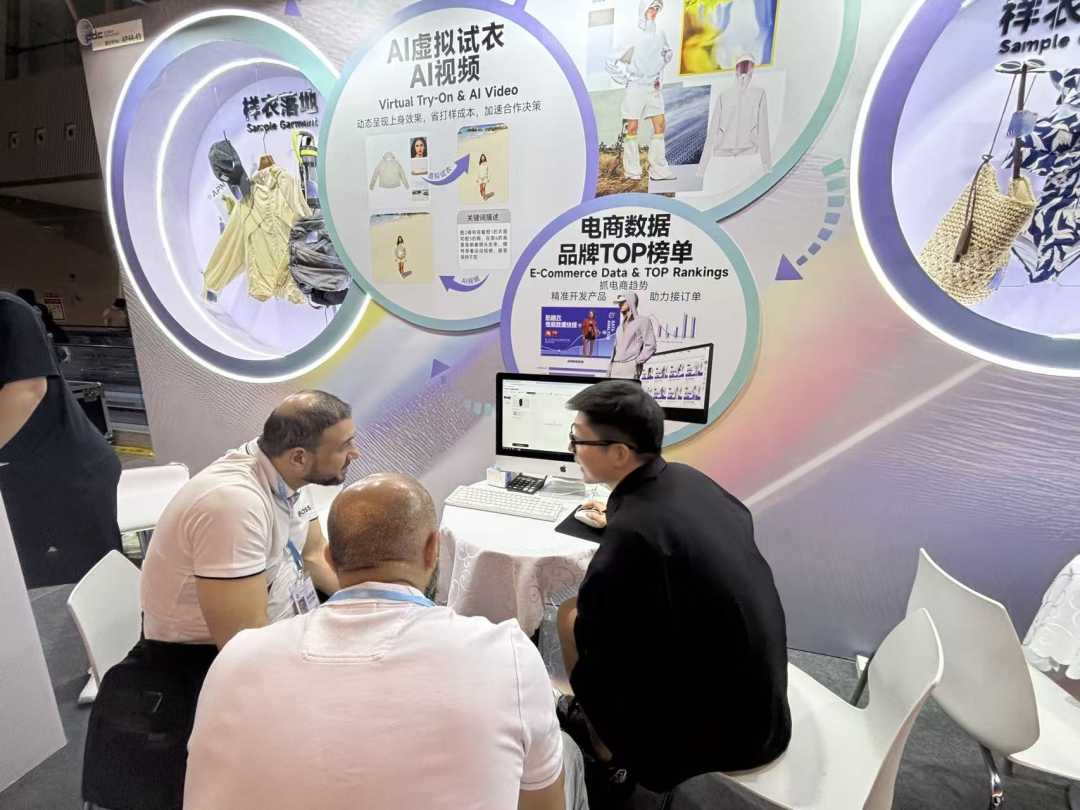 这家总部在上海的AI服装设计公司,还提供AI与面料、颜色、图案趋势结合的服务。现场工作人员告诉记者,与他们合作的许多是服装公司的设计师,他们已服务国内约60万客户。他们多次参加广交会,今年生意还行,客户会买他们的设计软件。