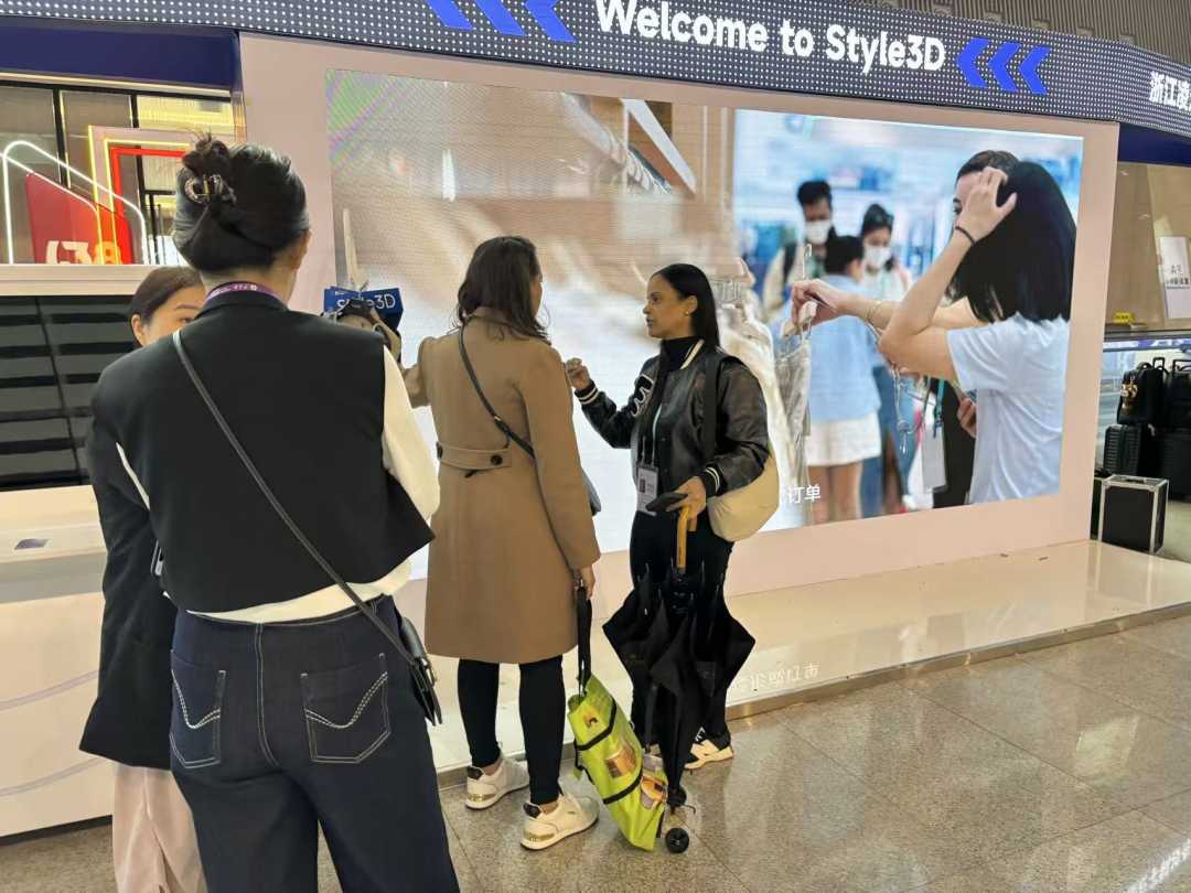 另一家总部在杭州的AI服装3D设计公司浙江凌迪科技的负责人也向记者说,他们用柔性仿真技术做3D服装设计已有五年,设计师的创意可以直接用3D设计来验证,不用定做实物样衣。广交会的参展商、采购商都可用其3D设计平台来设计服装。“我们连续参加广交会已经四五年了,设计、技术赋能服装出口。”这位负责人说,本届广交会三期第一天,外商多了,他们对AI技术非常感兴趣。今年他们的设计软件是“3D+AI”,他们在本届广交会上展示区域的40%都在讲AI设计。他们设计软件平台今年新增的AI功能,是基于国内外AI大模型,还结合了自研的服装垂类大模型。这位负责人说,AI出图、出视频可让3D设计效果得到更好呈现。