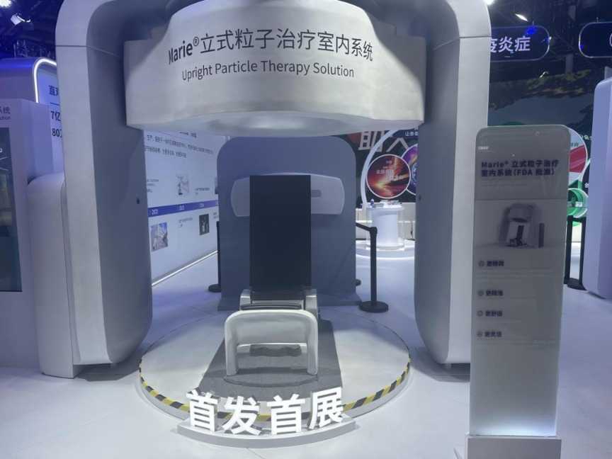 不远处,复星医药带来首展产品——Marie®立式粒子治疗室内系统。复星医药品牌与公众传播部总经理易锦媛表示,作为肿瘤治疗领域的革命性突破,这一产品摒弃了传统粒子治疗系统的庞大结构,患者可采用自然坐姿进行放射治疗,为传统放疗系统提供了一种更具成本效益且节省空间的全新治疗方案,凸显进博会医疗创新成果。