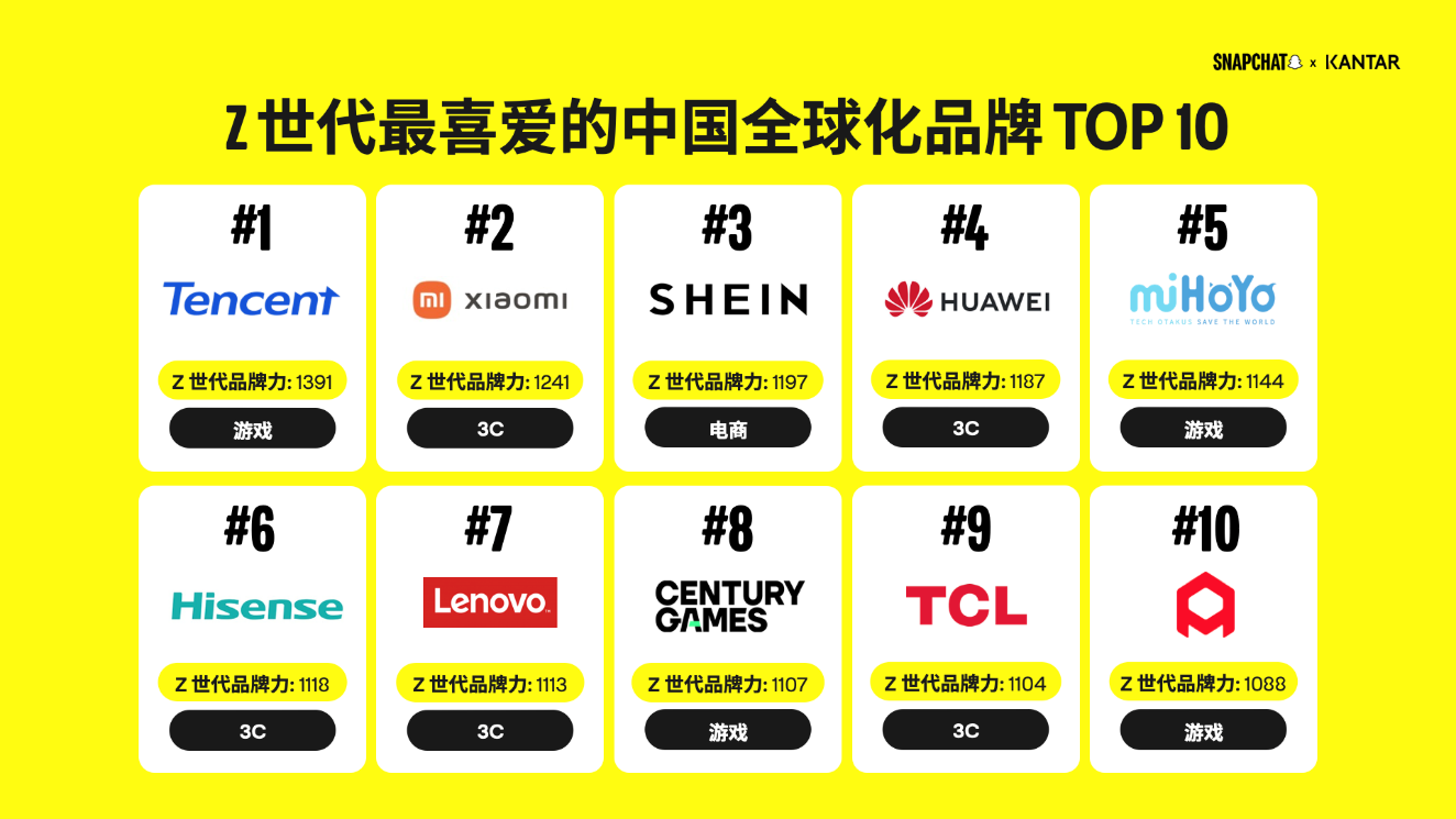 “我们在美国、欧洲,或者在中东地区,看到非常共通的、显著的特质,就是‘高性价比’。”谢宛玲表示,“在一些区域,中国品牌表现特别突出,特别是在功能使用、引领潮流,或者创新方面。”Z世代对中国品牌的青睐,是出海企业市场破局的关键。那么,这样一个重要的消费群体,偏好于哪些中国品牌呢?