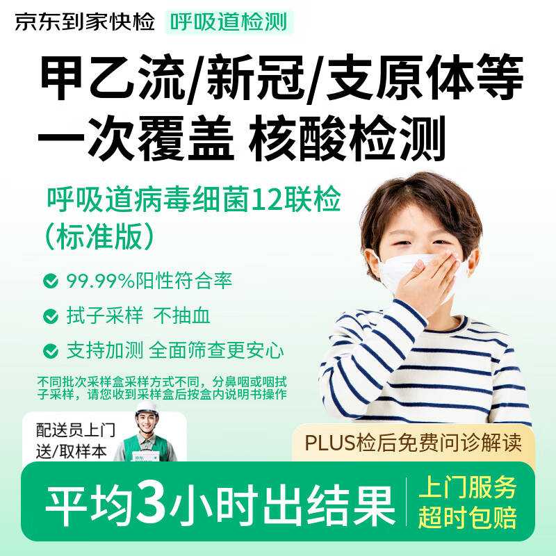 时下,越来越多用户在出现流感症状后,会选择上门快检服务进行检测,京东健康服务受青睐。来自京东到家快检的数据显示,10月28日-11月3日,呼吸道细菌病毒检测订单量环比前7天增长63%,阳性检出率上升至59.3%。其中,由专业护士上门采样的呼吸道病毒细菌核酸检测服务,订单量环比前7天增长近1倍。京东到家快检目前可提供呼吸道病毒细菌18联检(少儿版)、呼吸道病毒细菌12联检(标准版)等服务,平均3小时出具检测结果,帮助用户快速明确感染原因。