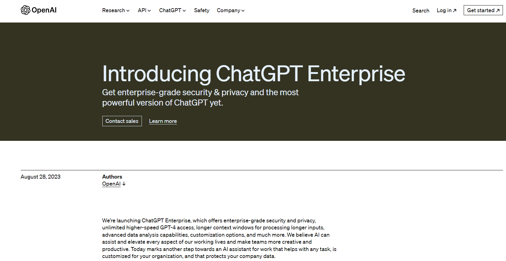 当地时间8月28日,OpenAI宣布将推出ChatGPT企业版,该版本将提供更高级别的安全和隐私保护,确保对话数据不会被用于模型训练,同时其执行速度将是普通版GPT-4的两倍。