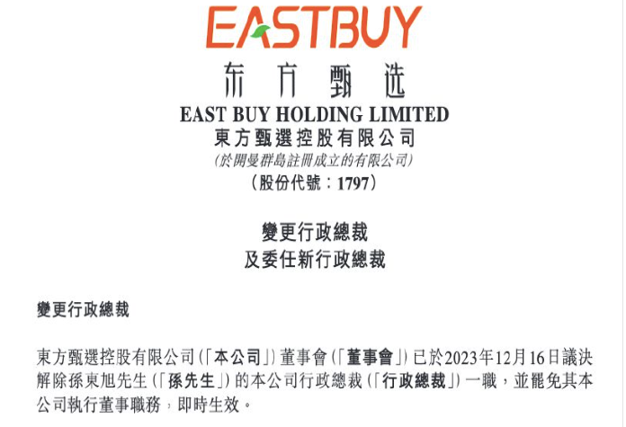 俞敏洪强调,没有孙东旭的努力和坚忍不拔的奋斗,就不可能有东方甄选的发展和今天。两人之间保持着很好的沟通,没有任何龃龉和隔阂,请朋友们放心。2023年12月,东方甄选宣布,经董事会决定,董事长俞敏洪兼任东方甄选CEO职务,免去孙东旭的东方甄选执行董事、CEO职务。当时公告称,鉴于最近的舆论风波,孙东旭职务变动反映了其近期对公司品牌及声誉管理不善;董事会认为,孙东旭退出该等职位将能够更好地维护本公司股东的利益,从而让经验更为丰富的董事接管公司的日常管理。