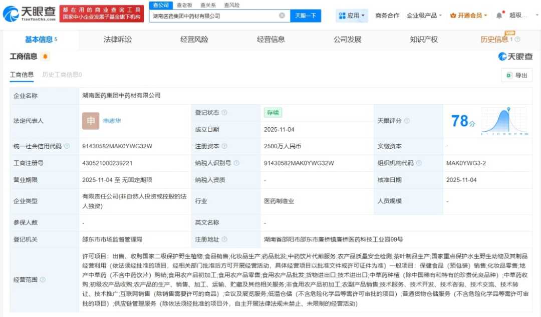 湖南医药集团中药材公司成立,注册资本2500万布局医药产业链