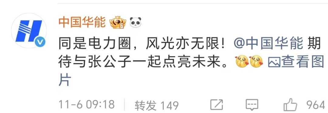 中国华能、中国核电也在评论区邀请张凌赫去前去探访,进一步彰显了能源央企的公众亲和力。