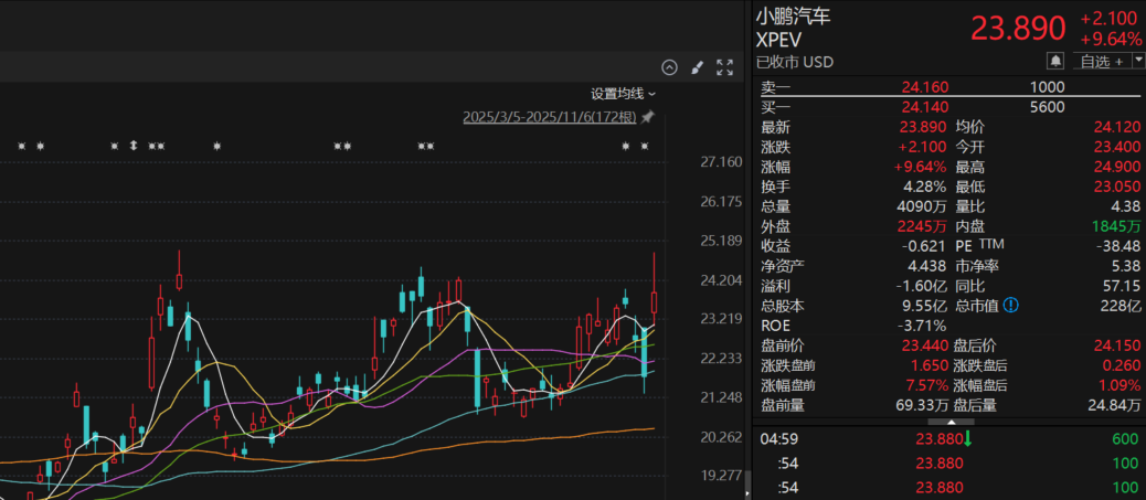 在何小鹏的两度自证下,资本市场给小鹏汽车投下了信任票。昨夜今晨,小鹏汽车美股开盘后大涨,盘中一度涨超14%,截至收盘涨9.64%,报23.89美元,总市值228亿美元,机器人市场迎来新动态。在昨晚举办的小鹏X9超级增程技术发布会上,小鹏再度就“IRON机器人内藏真人”质疑作出回应。过程中,小鹏机器人IRON先是走着猫步出场,随后由工作人员在通电情况下剪开其腿部覆盖件进行公开展示,包括腿部的晶格肌肉与机械结构一览无遗。
