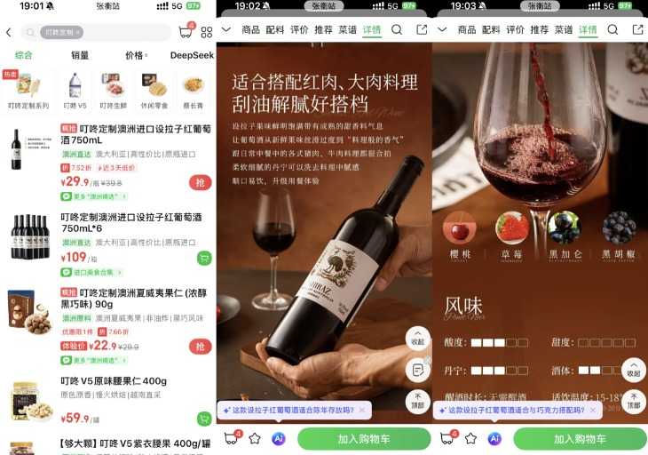 就在进博会期间,叮咚买菜上架了一款可以做“口粮酒”的原瓶进口设拉子红葡萄酒,通过叮咚买菜定制化供应链,将一瓶原瓶进口、果香浓郁、丹宁细腻的澳洲红酒的价格做到了极高品价比,目前平台上该款红酒在组合装选项下,单瓶价格只需十几元。后续,叮咚买菜还会继续联合澳洲酒厂,上架定制款澳洲巴罗萨老藤设拉子等不同定位的红酒产品,皆兼具澳洲原瓶进口红酒的品质和更加亲民的价格,提升进口红酒性价比。