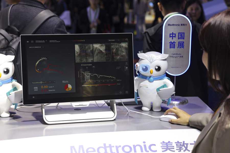 第八届进博会期间,美敦力举行CathWorks实验室开放日,展示AI技术在心血管诊疗领域的创新应用,CathWorks FFRangio系统亮相,实现从经验判断到数据验证的转变,有望成为未来精准医疗领域不可或缺的一部分。