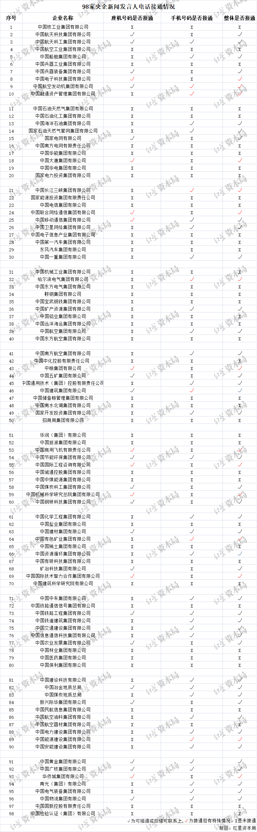 98家央企新闻发言人信息披露,接通率情况分析