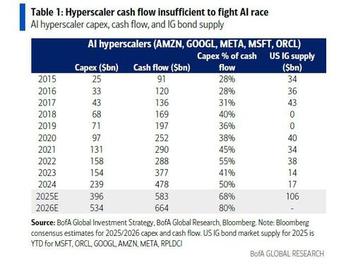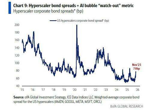 答案或许依然来自有着华尔街“最准分析师”之称的美银首席策略师哈特内特(Michael Hartnett)——早在八月他就精准预言需密切关注信用利差以判断AI泡沫破裂的时机。而在上周末其最新题为《高血压》(Hypertension)的资金流报告中,这位美银首席投资策略师指出:在他发出预警三个月后,超大规模AI企业的债券信贷利差已开始扩大并引发关注……