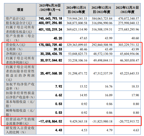 招股书介绍,巍特环境成立于2003年8月,主要为客户提供管网探测、检测评估、方案设计、零开挖修复、应急抢险、软硬件开发、数据分析与应用、智慧化平台建设及运营管理等服务。财务数据显示,巍特环境营收波动明显,2022年至2024年及2025年上半年(下称“报告期”),公司营业收入分别为3.03亿元、2.93亿元、3.29亿元、1.76亿元;净利润分别为4560.50万元、4857.21万元、5304.88万元、3025.84万元。