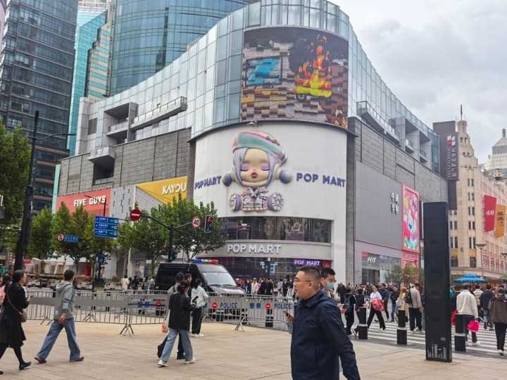 南京路上的泡泡玛特旗舰店颇受外国游客欢迎。 李宝花摄