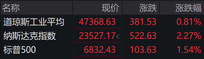 当地时间周一,美股三大股指尾盘冲高,道指涨近400点,科技股表现抢眼,英伟达大涨5.8%,谷歌涨3.9%,纳斯达克中国金龙指数亦大涨2.3%,市场情绪积极。国际油价上扬,WTI原油、布伦特原油均小幅上涨,国际金价更是大幅走高,COMEX黄金期货涨2.81%,市场避险情绪升温。