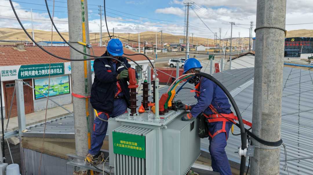 11月5日,国网西宁供电公司研制的植物油变压器在青海玛多县玛拉驿村安装调试。刘玉斌摄