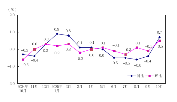 11月11日,国家统计局深圳调查队发布数据显示,2025年10月份,深圳PPI(工业生产者出厂价格指数)同比上涨0.7%,环比上涨0.5%,这反映了深圳工业生产者出厂价格的积极走势;工业生产者购进价格同比下降0.5%,环比上涨0.5%。1—10月平均,工业生产者出厂价格同比上涨0.1%,购进价格同比下降0.3%。