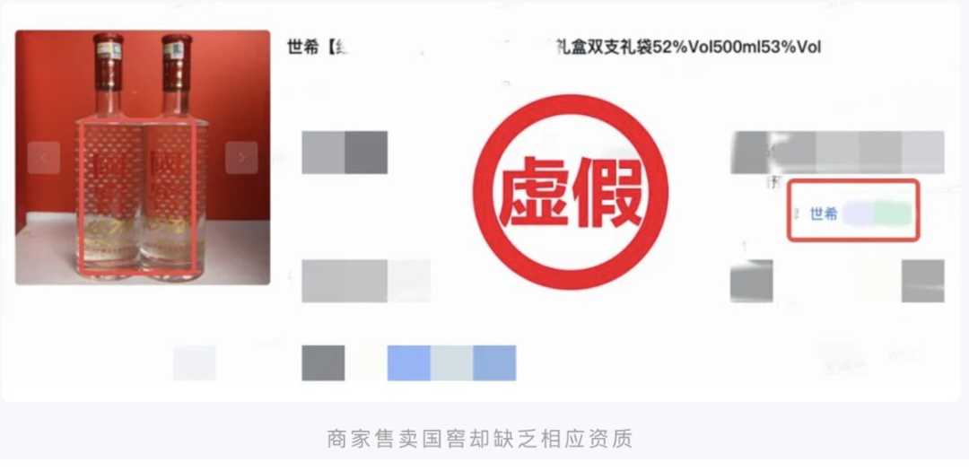 案例三:品牌资质不符。部分商家不具备售卖某品牌的资质,却售卖相关品牌的酒品,如某商家售卖国窖1573,品牌信息却为世希,误导消费者以为商家资质齐全。经核实,上述行为涉嫌品牌资质不符,平台依据《商家【品牌资质缺失/不符】细则》对相关商家进行处置,包括并不限于商品封禁、停业整顿等。