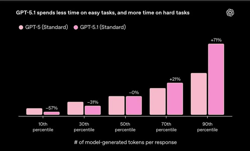 主打专业推理的GPT-5.1 Thinking则实现了思考节奏的智能调节,简单任务响应速度较前代提升两倍,复杂问题则延长思考周期输出详尽答案,且大幅减少专业术语与晦涩表达,非技术人员也能轻松理解复杂概念,人机交互效率大幅提高。