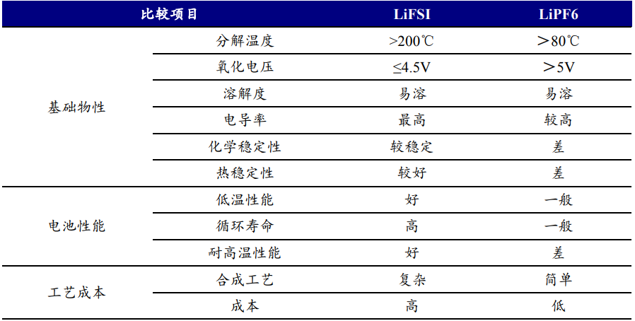 目前,六氟磷酸锂(LiPF6)占据电解液溶质市场主导地位,但其存在化学性质不稳定、低温环境下效率受限等缺点,LiFSI则具有高导电率、高化学稳定性、高热稳定性,以LiFSI为锂盐的电解液将更能满足未来电池性高能量密度以及宽工作温度的发展需求,被认为是LiPF6的良好替代品,这也为氯化亚砜市场带来了新的发展机遇。