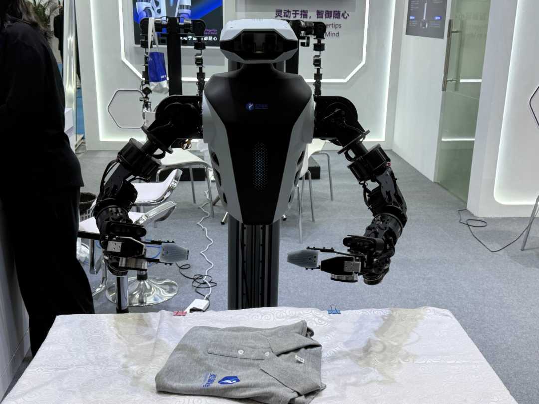 机器人正在叠衣服图片来源:每经记者黄婉银摄