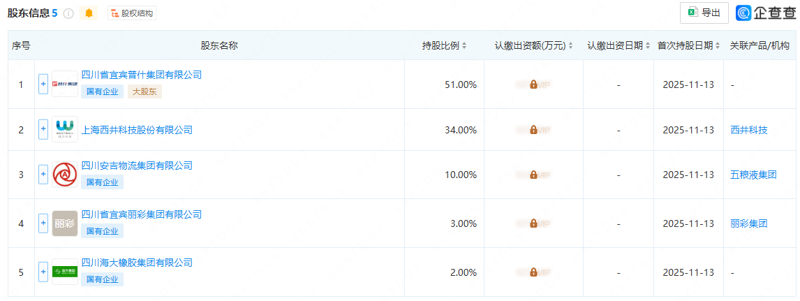 公司股东信息显示,四川普西智能装备有限公司由四川省宜宾五粮液集团有限公司全资子公司四川省宜宾普什集团有限公司等共同持股,这一背景为其未来发展提供了坚实的支撑与保障。