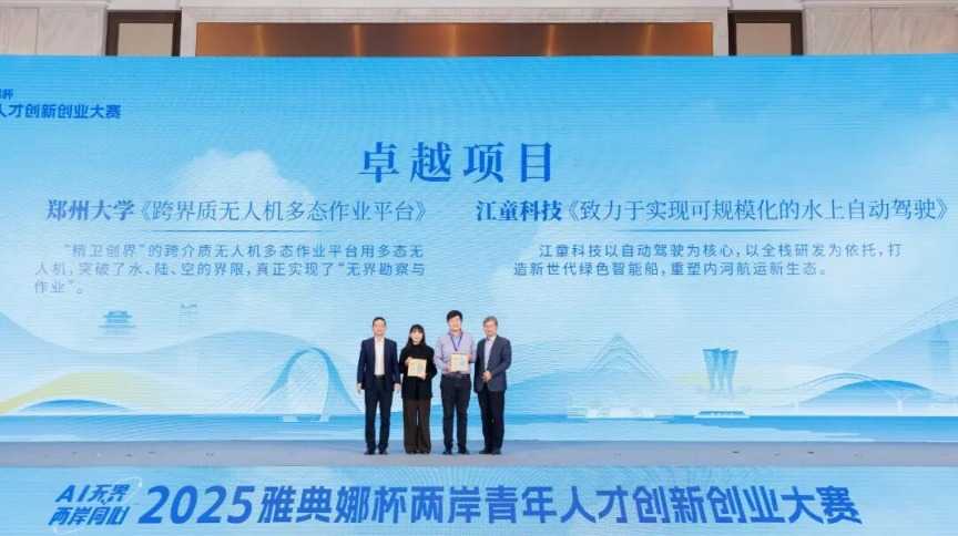 经过现场多环节筛选与角逐,19支队伍中的诸多优秀项目逐渐崭露头角,赢得了评委及嘉宾的赞誉。最终,在现场嘉宾的一致见证下,大赛揭晓获奖名单:卓越项目2名、杰出项目4名以及潜力项目13名。创业赛道的“致力于实现可规模化的水上自动驾驶”项目和创新赛道“跨界质无人机多态作业平台”项目力摘桂冠,获得卓越项目奖。
