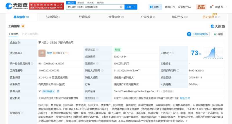 南方财经11月18日电,天眼查工商信息显示,近日,萝卜快跑关联公司萝卜运力(北京)科技有限公司发生工商变更,原股东陈卓、尚国斌退出,新增百度旗下阿波罗智能技术(北京)有限公司为股东并全资持股。这一变更凸显了百度在智能出行领域的持续布局与战略调整,萝卜运力(北京)科技有限公司成立于2020年12月,法定代表人为毕然,注册资本1000万人民币,经营范围含软件开发、基础软件服务、应用软件服务、计算机系统服务、互联网数据服务、信息处理和存储支持服务、信息系统集成服务等,展现了其在智能出行领域的全面技术实力。