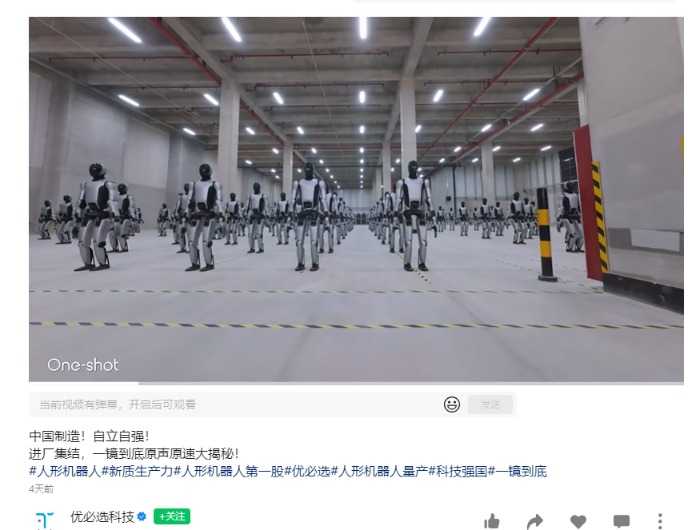 优必选表示,官方视频号已针对此不实说法发布了一镜到底、原速原声的视频素材,体现了现场的真实情况,进一步证明了其工业人形机器人的量产交付能力。