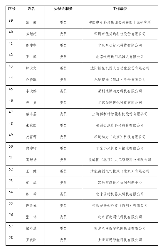 工信部公示人形机器人标准化技术委员会委员名单 宇树科技、智元创新代表任副主任委员