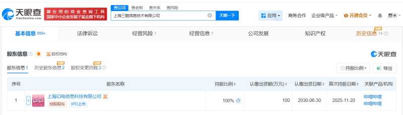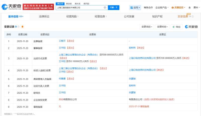 每经AI快讯,天眼查工商信息显示,近日,上海三鹅信息技术有限公司发生工商变更,原股东上海三鹅企业管理合伙企业(有限合伙)、王宇阳退出,新增B站关联公司上海幻电信息科技有限公司为全资股东。同时,王宇阳卸任法定代表人,由郑彬炜接任。上海三鹅信息技术有限公司成立于2020年2月,注册资本100万元人民币,经营范围包括信息、计算机科技领域内的技术咨询、技术开发、技术转让和技术服务等。对外投资信息显示,该公司直接持股大鹅文化关联公司上海大鹅文化传播有限公司,持股比例约33%。