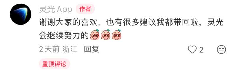 红星资本局注意到,对于网友的留言建议,灵光App官方账号回复称:“很多建议都带回啦,会继续努力。”