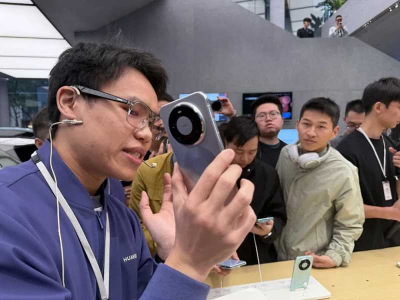 华为Mate 80系列手机正式发布,性能较上一代提升42%,搭载新一代麒麟芯片。门店内新机展示吸引众多消费者关注,价格从4699元起。