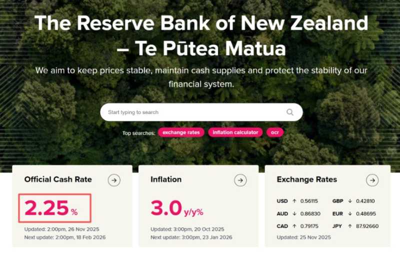 新西兰联储降息25个基点至2.25% 符合市场预期