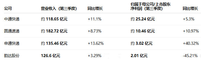 韵达股份三季度净利同比下滑近半,“量价失衡”致业务掉队。与极兔速递形成鲜明对比。