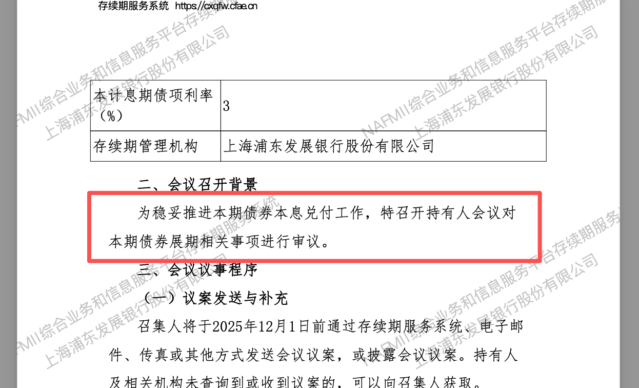 万科表示,为稳妥推进本期债券本息兑付工作,特召开持有人会议对“22万科MTN004”的展期相关事项进行审议。