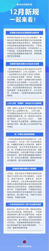 12月新规聚焦食品安全与交通管理,加强液态食品运输监管,同时停止销售旧国标电动自行车,确保民众安全。
