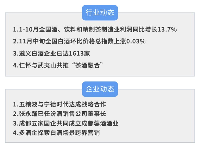 1.1-10月全国酒、饮料和精制茶制造业利润同比增长13.7%