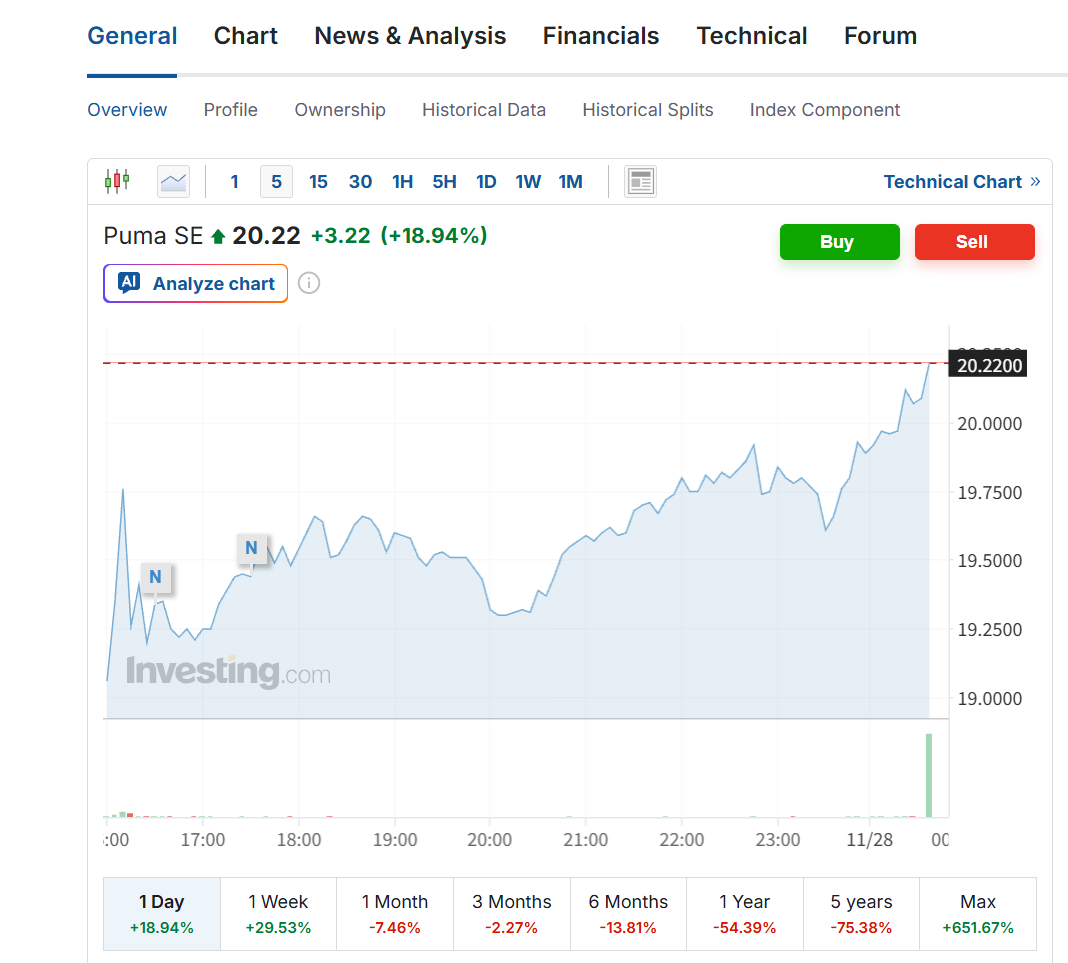 安踏或收购德国运动品牌彪马 股价暴涨超18%