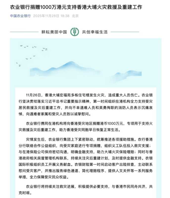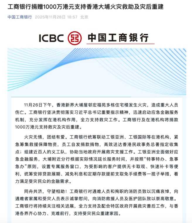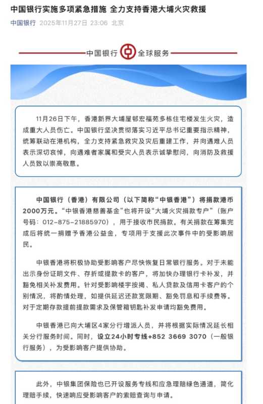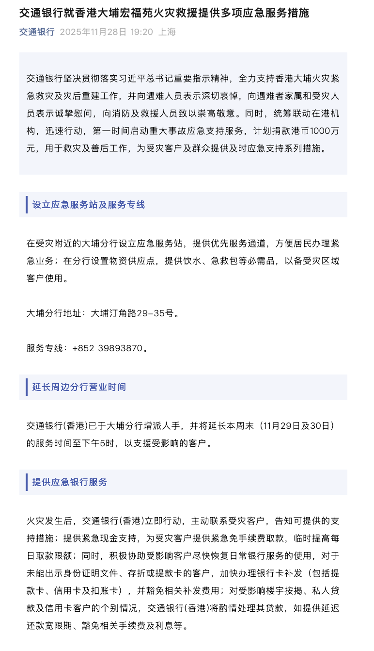 多家银行紧急行动,支持香港大埔火灾救援及重建工作