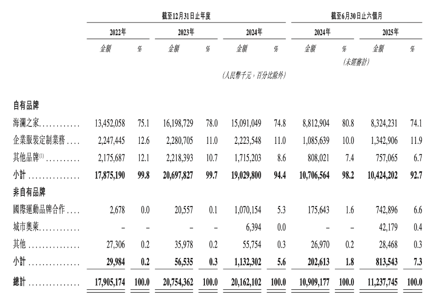 截至2025年上半年,海澜之家在中国境内营运21家海德门店,同时在主要电商平台开设线上门店。