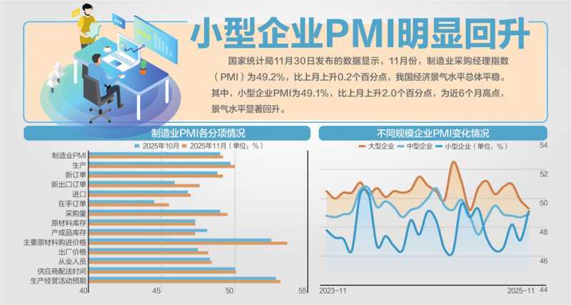 11月30日,国家统计局公布11月中国采购经理指数(PMI)运行情况。