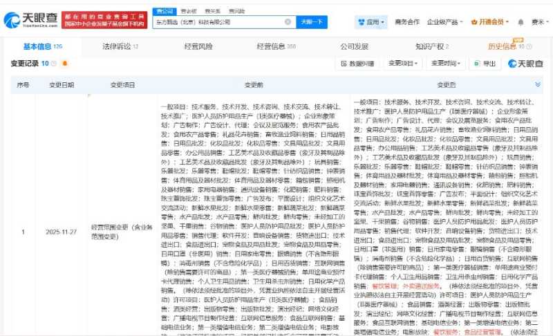值得关注的是,该公司经营范围新增餐饮管理、外卖递送服务、餐饮服务等。
