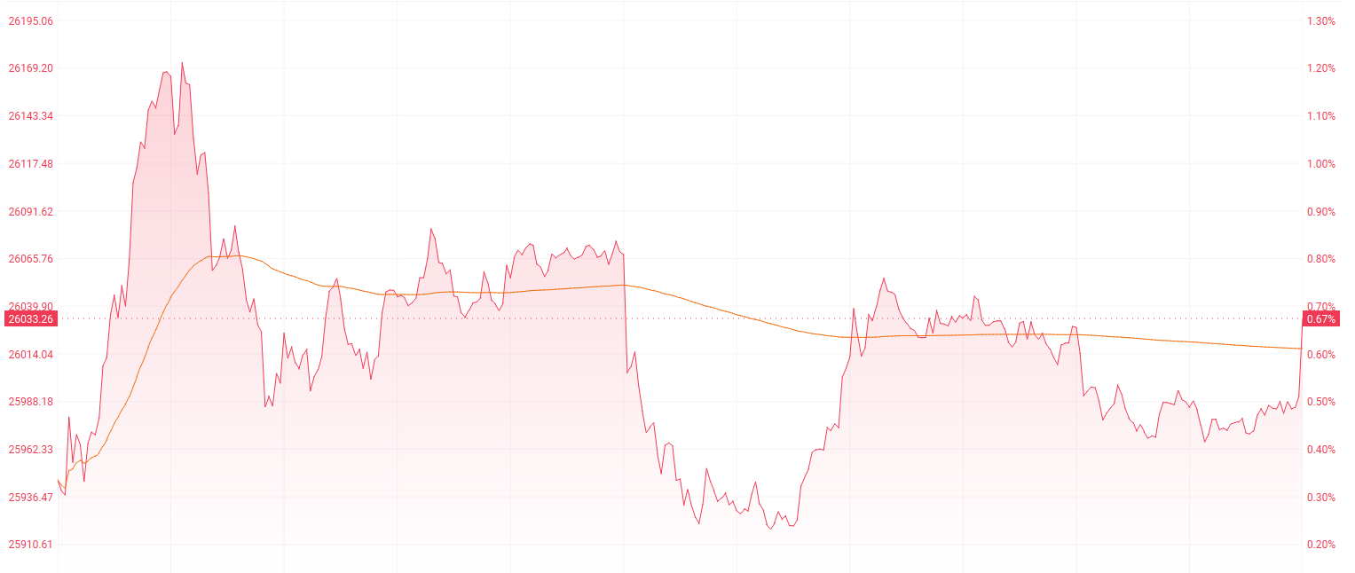 港股三大指数集体走强。截至收盘,恒生指数涨0.67%,报26033.26点;恒生科技指数涨0.82%,报5644.76点;国企指数涨0.47%,报9172.84点。