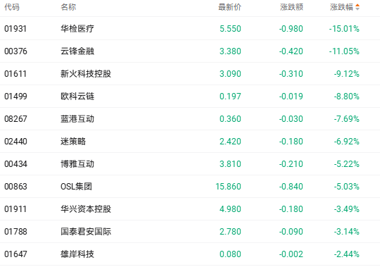 截至收盘,新火科技控股(01611.HK)跌9.12%、欧科云链(01499.HK)跌8.80%、OSL集团(00863.HK)跌5.03%。